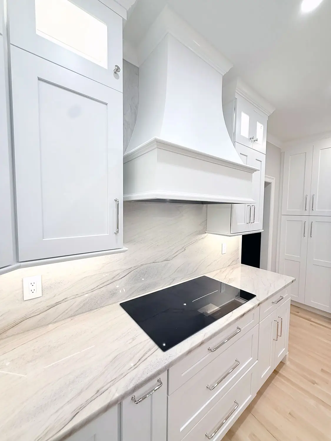 Kitchen renovations in Milton, MA with full design and build services, including layout reconfiguration, custom cabinetry, quartz or granite countertop installation, backsplash tiling, hardwood or tile flooring, recessed and under-cabinet lighting, plumbing and electrical updates, appliance installation, and permit/inspection coordination.